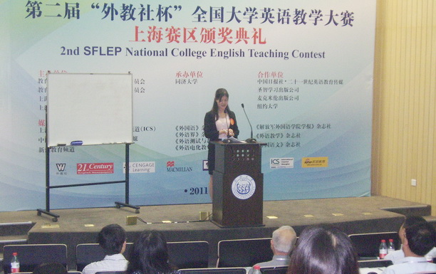 在2011年6月11日至12日举行的第二届“外教社杯”全国大学英语教学大赛上海赛区复赛综合课组比赛中,我校外国语学院大学英语教学部选派的青年教师潘丽红表现出色,荣获本次大赛综合组的三等奖。潘老师在本次大赛中的突出表现,使我校英语教师在此类全国性、高水准的讲课赛事中实现了零的突破。