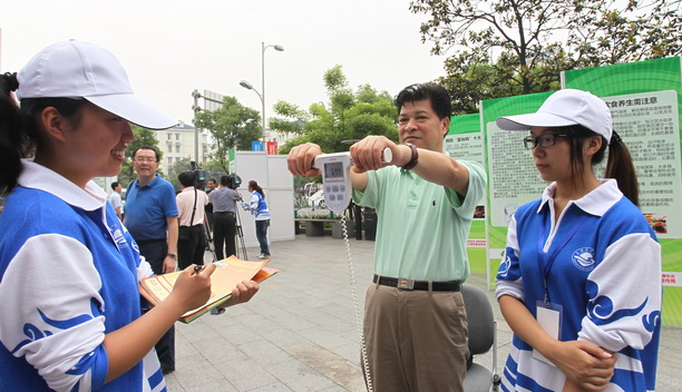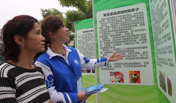 市民互动是食品安全宣传中的一个亮点,我校食品学院志愿者穿着统一的志愿者服装,搭建膳食宝塔、为居民同志们解答食品选购以及保健上的问题,告知食品妙用,不失为一道亮丽的风景线。志愿者们将真实的优劣食品摆放在宣传桌上,与市民进行实时互动和交流,以他们学到的专业知识,为居民解答一些他们的不解之惑,得到居民的一致赞赏。