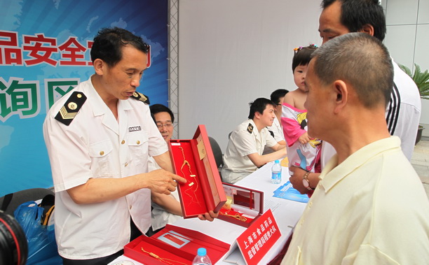 市食品药品监督管理局工作人员向市民讲解如何识别真假人参