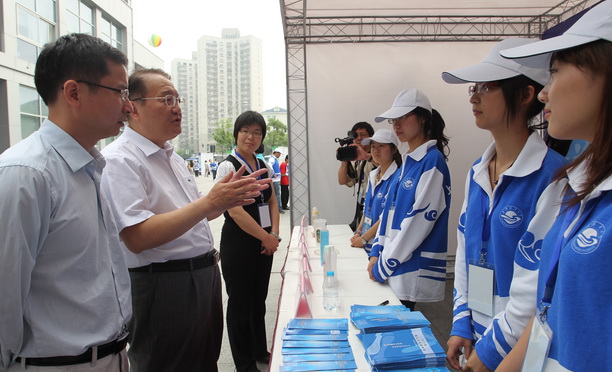潘迎捷校长与我校食品安全宣传周志愿者交谈