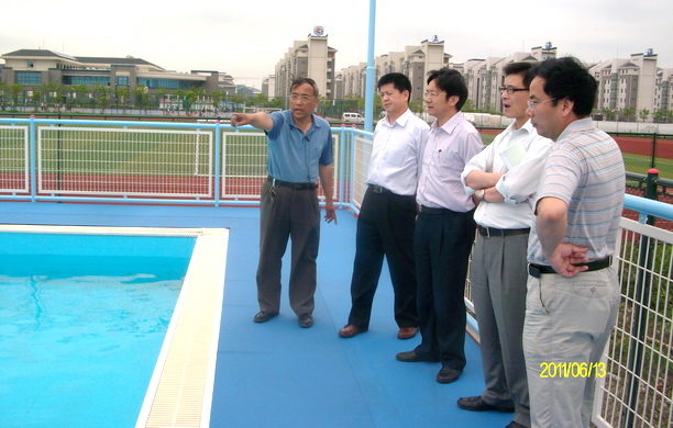 6月13日下午,封金章副校长、程裕东副校长实地检查了我校游泳池和气象站建设情况,后勤管理处俞渊处长、后勤服务中心王国华总经理、后勤管理处陈小山老师和上海体育实业公司项目负责人陪同检查。