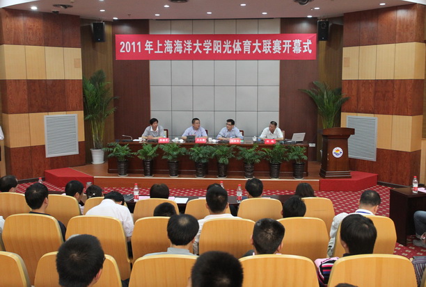 6月16日下午,2011上海海洋大学阳光体育大联赛开幕式在行政楼137会议室隆重举行。与会的领导有:上海市教委体卫艺科处王从春处长;校运动委员会主任程裕东副校长。校体育运动委员会委员、各学院、各部门阳光体育工作组成员、校工会各体育协会负责人、体育部教师、校学生体育社团负责人参加了会议。会议由校体育运动委员会副主任张继平主持。
