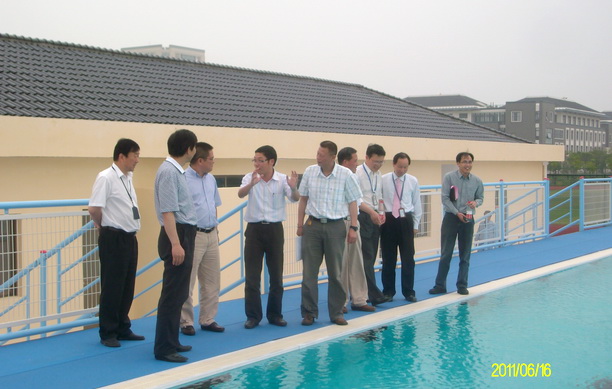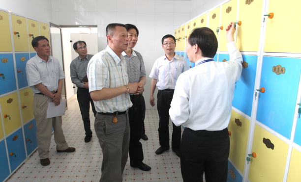 相关部门负责人陪同王从春处长视察游泳池(陈小山摄)