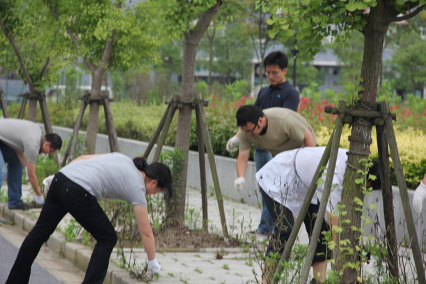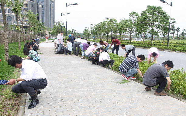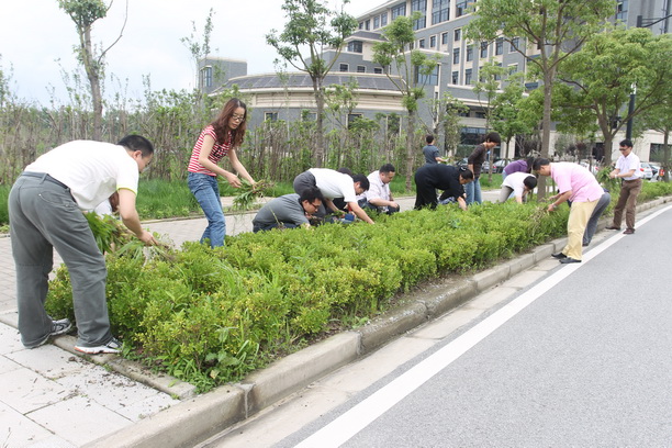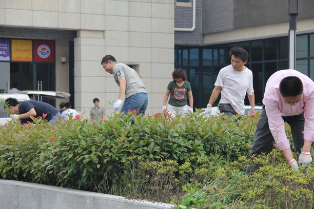 为保证树苗的健康生长,还校园绿化区一个清爽环境,6月21日下午,机关党委组织机关七个支部的全体党员参加义务拔草劳动,帮助后勤工人师傅们清除校区内的野草。