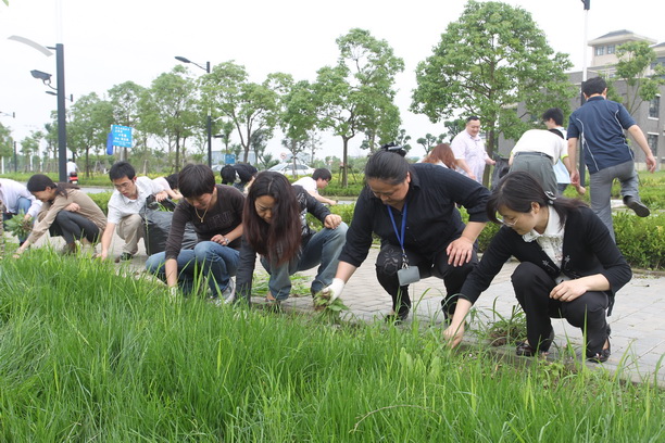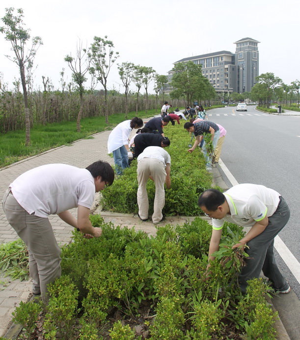 机关的党员同志们接到劳动通知后,积极响应,立即安排好手头工作,及时参加到拔草劳动中来,校领导及各部门负责人也来到现场和同志们一起劳动,还有部分非党员教师也积极参与进来。各支部分工协作,分别在行政楼环路区、景观大道区和学生事务中心片区3个区域内进行清除杂草,他们不惧闷热,不顾粘在手上粘粘的草浆,冒着细雨,全身心地投入拔草,历时一个半小时,最终圆满地完成了劳动任务。