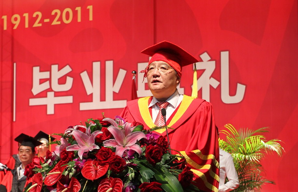 校领导在讲话中向毕业生表示最热烈的祝贺,祝贺同学们通过勤奋学习和顽强拼搏圆满完成了大学学业;祝贺同学们站在新的起点,迈向新的征程;同时饱含深情地嘱咐毕业生,要永远保持强烈的责任心,做一名有远大理想的人,将自己的命运和国家的发展紧紧联系在一起,立大志,干实事,踏实勤恳地在各自的领域里做出杰出的成就;不断地培养和练就终身学习的能力、承受挫折的能力和把握机遇的能力。希望广大毕业生一如既往地关心、支持学校发展,在百年校庆来临时相聚母校,共庆母校百年华诞。学院领导及教师代表在发言中希望同学们持之以恒,实实在在做人,认认真真做事,拥有一个充实、美好、有价值的人生。典礼上各学院播放了精心制作的记录短片,短片记录了毕业生在大学四年学习、生活的点点滴滴,并通过诗朗诵、歌唱等形式把毕业生往昔里的一幕幕在舞台上重现,让台下的毕业生和老师们无不为之感动。毕业生代表在发言中纷纷感谢母校的培养,表示无论走到哪里都会铭记母校的雨露之恩,继承并发扬“勤朴忠实”的百年传统,在各自的岗位上继往开来、奋发有为,并向学校赠送了礼物,愿母校发展蒸蒸日上,育贤才桃李满天下。