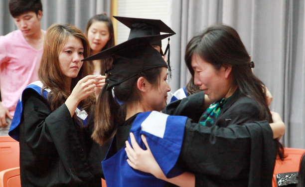 临行之际,毕业生与朝夕相处的辅导员相拥而泣