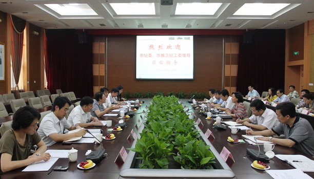 6月27日下午,市教卫纪工委书记黄也放,市纪委党风室主任李胜利,市教卫纪工委副书记、教委监察室主任许荣华,市教卫纪工委副书记、教委监察室副主任陈家源等一行7人到我校调研党务公开试点工作,校党委书记虞丽娟、校党委副书记吴嘉敏、校党务公开工作小组和办公室成员参加了会议。会议由黄也放书记主持。