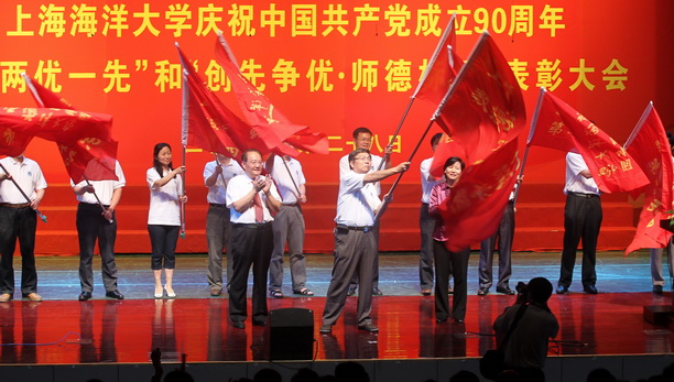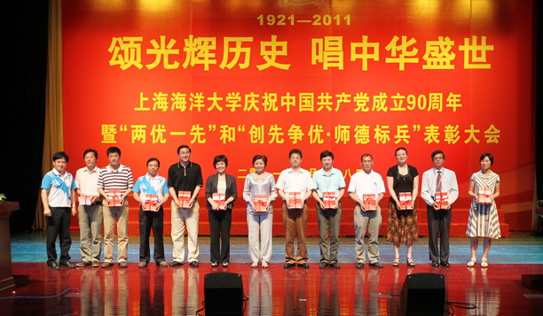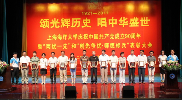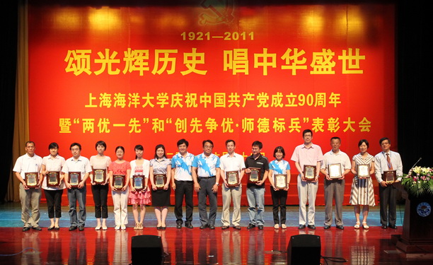 校长潘迎捷宣读了《关于表彰上海海洋大学先进基层党组织、优秀共产党员、优秀党务工作者和创先争优·师德标兵的决定》和市教卫党委系统“两优一先”表彰名单。校领导黄晞建、黄硕琳、封金章、程裕东、顾乃达为我校先进基层党组织、优秀共产党员、优秀党务工作者和“创先争优·师德标兵”代表颁奖。虞丽娟书记为我校获得市教卫党委系统先进基层党组织、优秀共产党员和优秀党务工作者的组织和个人颁奖。机关党委第四党支部书记李兴华代表市教卫党委系统先进基层党组织、海洋科学学院戴小杰代表市教卫党委系统优秀共产党员先后发言。
