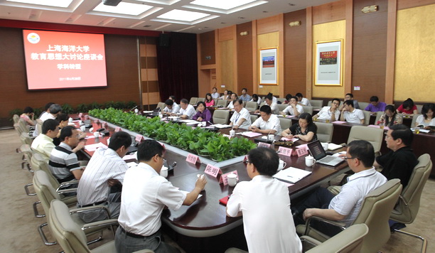 2011年6月28日上午在图文信息中心102室,科技处组织召开教育思想大讨论学科转型专题座谈会,来自各学院(部)及相关职能部门的近80位代表参加了座谈会。会议由黄硕琳校长主持,校党委书记虞丽娟、校长潘迎捷出席会议并讲话,各学院的8名教授代表作主题发言。
