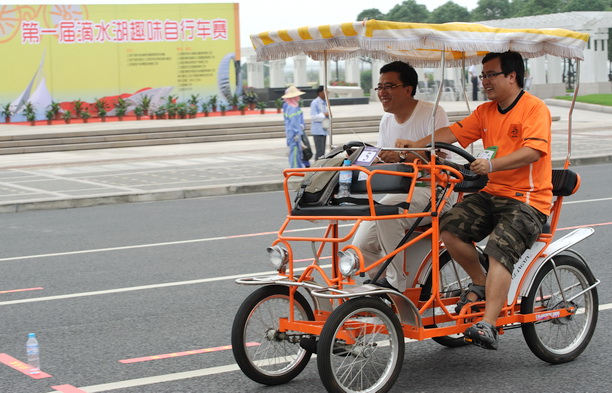 趣味自行车赛其意在乐、乐中见长,于妙趣横生中呈现参赛选手合力协作、技能巧用、体能耐力等能力的综合运用,以达到运转自如而更胜一筹。虽然正逢高温酷暑、烈日炎炎,但我校参赛队员精神饱满、表现出色,他们团结合作、奋力拼搏,在强手如林参赛者中脱颖而出,11名参赛队员以良好的成绩进入第二天的决赛。经过两天激烈鏖战,最终,我校外国语学院马百亮和财务处李峦峰二位老师的二人组合获得休闲自行车压气球赛第二名,海洋科学学院孔德星和财务处董青杰二位老师的二人组合获得休闲自行车耐力赛第二名。