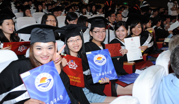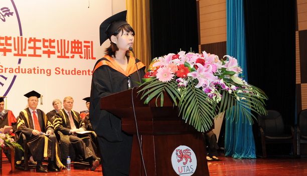 上海海洋大学校长潘迎捷教授和塔斯马尼亚大学校务委员会副主席Rod Roberts先生分别致辞,他们向学业有成、即将告别母校、踏上新的人生征途的2011届毕业生表示最热烈的祝贺!向为同学们成长成才而付出辛勤劳动的教师们表示衷心的感谢!他们深情表达了对毕业生们的祝福与鼓励,对两校合作办学的丰硕成果给予了高度的评价。毕业生代表许海燕在发言中也表达了毕业生们对母校的热爱、对老师谆谆教导的感激、对未来的憧憬之情,真挚恳切地话语中流露出对母校、对学院的浓浓不舍之情。