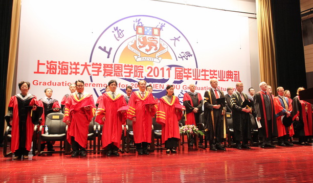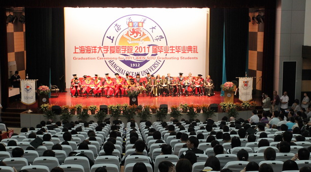 时光荏苒,四年美好而艰辛的大学生活犹如漏斗中的沙石已悄然流进昨日。2011年7月8日上午,爱恩学院2011届毕业生毕业典礼在大学生活动中心隆重举行,共有356名毕业生获得上海海洋大学颁发的毕业证书和学位证书及塔斯马尼亚大学颁发的学位证书,光荣而又圆满地结束了他们的四年大学生涯。上海海洋大学副校长程裕东教授主持毕业典礼。