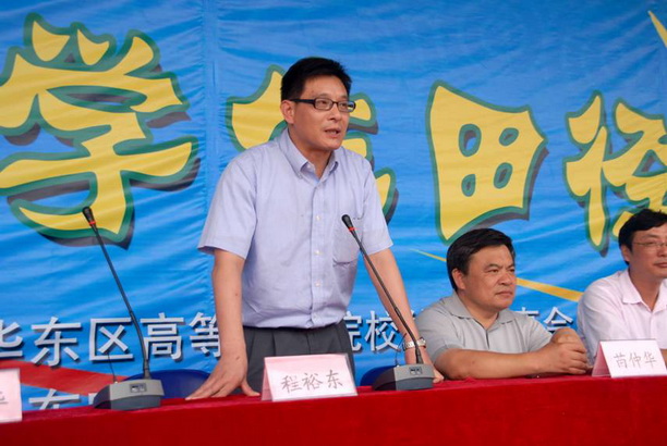 程裕东副校长致辞,承诺我校将积极努力把下一届华东区农业院校大学生田径运动会办好