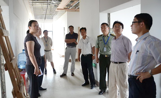 检查组在食品学院B楼施工现场进行检查