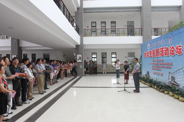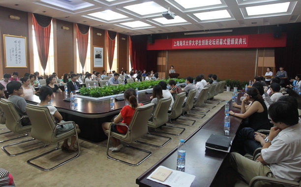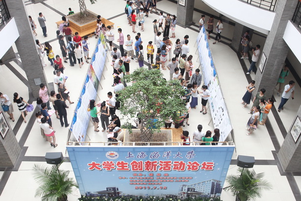 2011年7月12日上午八点半,由教务处主办的“上海海洋大学大学生创新论坛”在第二教学大楼大厅隆重开幕。副校长程裕东、科技处、团委、各学院院领导、大学生创新项目指导老师和项目组成员等莅临论坛现场。本次论坛由开幕式、参观展板、学术论坛和闭幕式四部分组成。