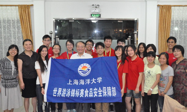 7月17日晚,校长潘迎捷来到军工路远洋渔业培训中心招待所看望我校世界游泳竞标赛志愿者。食品学院党委书记陈江华、校团委书记夏雅敏以及相关负责老师陪同出席。