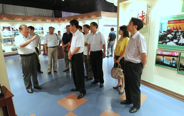潘迎捷校长在校史馆向宛晓春校长一行介绍我校相关情况