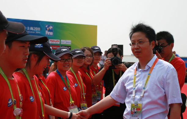 7月23日上午,在公开水域游泳竞赛项目比赛的最后一天,共青团上海市委书记潘敏在我校团委书记夏雅敏的陪同下来到金山公开水域竞赛区,看望慰问奋战在高温一线的我校公开水域竞赛部志愿者。