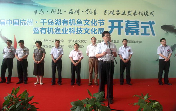 由浙江省杭州市人民政府、省文化厅、省文物局、省海洋与渔业局和上海海洋大学主办,浙江省淳安县人民政府、杭州市农办和浙江自然博物馆承办的中国杭州第二届千岛湖有机鱼文化节暨有机渔业科技文化展于2011年8月18日在杭州市浙江自然博物馆隆重开幕。我校党委副书记吴嘉敏教授、生命学院党委书记张登沥,以及刘其根教授、陈马康教授、童合一教授等应邀出席,吴嘉敏副书记还应邀在开幕式致辞。本届文化节的主题是“生态、科技、品牌、创意,引领农业发展新模式”。