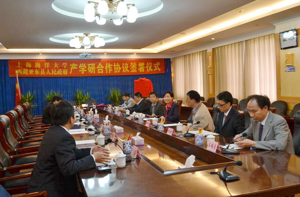 2011年8月21日~24日,在校党委虞丽娟书记率领下,校办主任张敏教授、科技处处长李柏林教授、水产与生命学院院长李家乐教授、食品学院院长王锡昌教授、邹曙明教授组成的教授博士专家团前往西藏日喀则地区和所属亚东县,进行了上海海洋大学与亚东县产学研合作协议签约和基地揭牌仪式和开展了科技下乡服务活动。并慰问了我校在西藏日喀则地区的援藏挂职干部段彦波老师。
