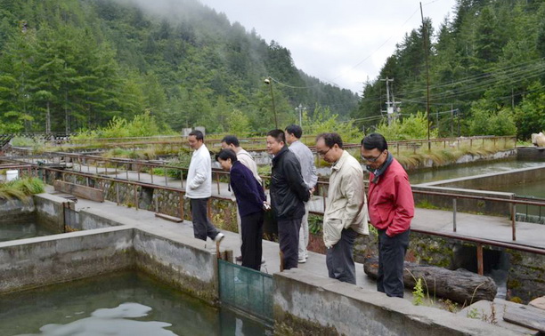 8月23日上午,在亚东县农牧局局长但唐兴的陪同下,教授博士服务团一行冒雨考察了亚东鲑养殖和育苗基地,对上亚东乡特有鱼类品种进行了鉴别,并对养殖亚东鲑养殖进行了技术指导。我校教授博士服务团一行还到海拔4360米的“世界最高镇”帕里镇湿地参观考察,对该县堆纳乡多庆湖主要渔业资源调查,发现其鲤科裂腹鱼亚科鱼类资源保护完好,裸鲤资源量极其丰富,具有良好的资源保护和开发前景。