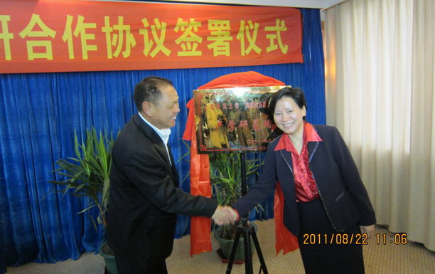 8月22日上午,双方产学研合作签约和揭牌仪式在西藏日喀则地区地委举行,日喀则地区地委副书记、行署常务副专员闵卫星主持了签约和揭牌仪式。虞丽娟书记和日喀则地委书记丹增朗杰进行了产学研基地揭牌,李柏林处长和亚东县政府县长陈小和代表双方签约。亚东县委书记纪晓鹏介绍了双方合作情况介绍,虞丽娟书记、西藏自治区农牧厅副厅长兰志明和地委副书记、行署专员许雪光分别作了重要讲话。西藏自治区科技局对此次产学研合作签约发来贺信。日喀则地区地委委员、秘书长陈来尼玛、行署秘书长尹立生、地区科技局党组书记李升荣、地区农牧局副局长孙希章等出席了会议。日喀则电视台头条新闻报道了签约仪式。