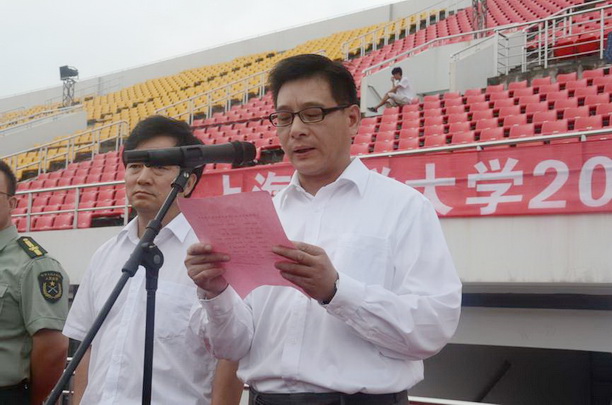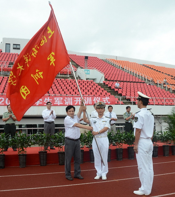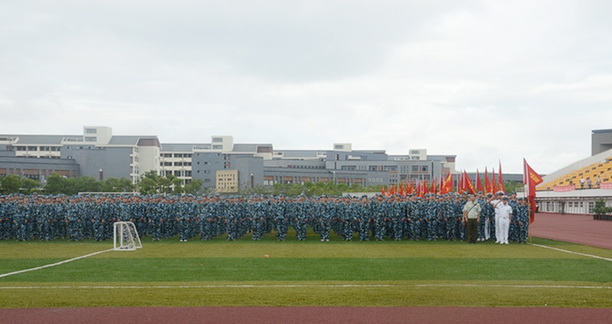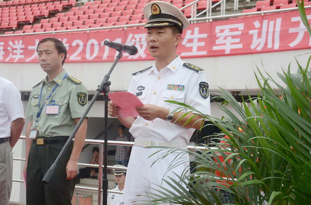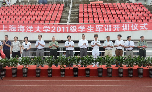 8月27日上午,我校2011级学生军训开训仪式在校体育场隆重举行。副书记、副校长黄晞建、副校长程裕东、海军某部队领导钱伟、各学院党委书记与相关部门负责人出席了开训仪式,开训仪式由校武装部部长姜新耀主持。