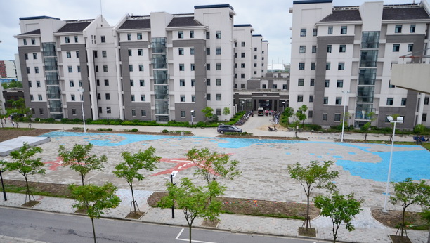 记者从校后勤管理处保障与改革办公室副主任郭雄华处了解到,在从7月16号正式放暑假到8月26号新生入学期间,后勤管理处在整个校区开展了诸如食品学院B楼4楼的整修、学生广场、第三食堂门前整修等共计14个学校基础建设项目。其中,学生广场的建设情况是同学们最为关心的。为此我们走访了校后勤管理处学生广场的项目经理刘颂雪,刘老师向我们介绍,学校斥资约40万建设的学生广场位于第一食堂与第五小区之间,为长66米、宽26米的矩形广场,占地约1800平方米,广场上设计有海星与海浪图案,配有约60平方米的舞台,目前为光面,将铺设硬防腐木,两侧设有配电箱以应对学生活动和摆摊的用电需求。学生广场的建设将为学生的小型活动提供巨大便捷,而配电箱的设置可以有效解决平时以前学生在路边摆摊接电的安全隐患。