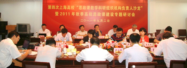 9月2日下午,第四次上海高校“思政课教学科研组织机构负责人沙龙”暨2011年秋季高校思政课建设专题研讨会在我校军工路校区专家接待中心第二会议室举行。校党委副书记、副校长黄晞建,市教卫党委宣传处副处长、教委德育处处长胡宝国,市学生德育发展中心,市民办教育处,《思想理论教育》杂志社等单位和部门负责同志及复旦大学、上海交通大学、同济大学等17所高校思政课教学科研组织机构负责人参加了会议。会议由市教委胡宝国处长主持。