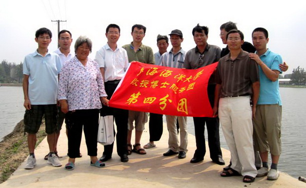 本次科技服务第一站是浦东新区老港镇沈富水产养殖专业合作社。该合作社是上海市最早成立的农民专业合作社,目前,占地面积200余亩,主要从事南美白对虾的养殖,2010年11月与我校签订了产学研对接协议,成为我校上海地区19个产学研对接单位之一。在沈富水产合作社,服务团成员首先与合作社的负责人沈兰英女士、技术员以及上海市浦东新区水产技术推广站陈建林、陈平,老港镇水产办潘永才主任等进行了交流座谈,详细询问了合作社今年养殖的南美白对虾种苗来源、饲料来源、投饲情况以及养殖过程中相关的水质调控技术,特别是应对今年台风问题所采取的一些措施。