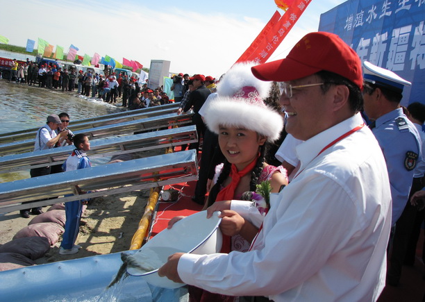 潘迎捷校长参加乌伦古湖增殖放流活动