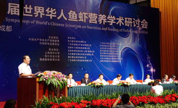 中国水产学会水产动物营养与饲料专业委员会主任麦康森院士,中国水产学会司徒建通秘书长,四川省水产局卿足平局长、四川农业大学郑有良校长,全国政协常委、通威集团董事局刘汉元主席等领导出席大会并分别致辞。大会开幕式由组委会秘书长、我校研究生部副主任冷向军教授主持。