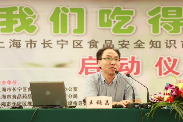 我校校长潘迎捷、市食品药品监督管理局副局长谢敏强和长宁区人大副主任邱华云共同启动了本次宣传活动。我校食品学院院长王锡昌教授应邀做了题为《食品安全是我们共同的使命》的讲座。