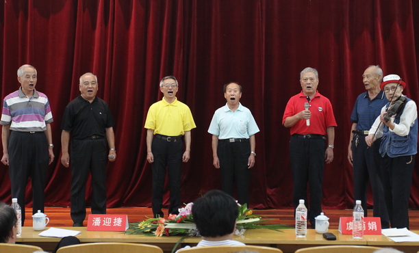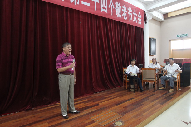 我校东方老年艺术团的老同志在敬老节大会上展示了自己的风采,表演了诗朗诵、京剧演唱、联唱等节目,赢得大家阵阵喝彩。