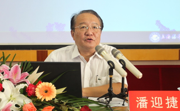 校长潘迎捷向老同志汇报一年来学校的发展成绩和下半年重点工作