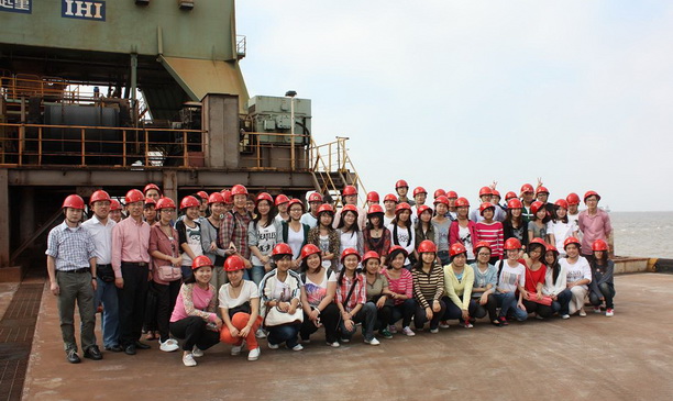 师生在宝钢码头参观