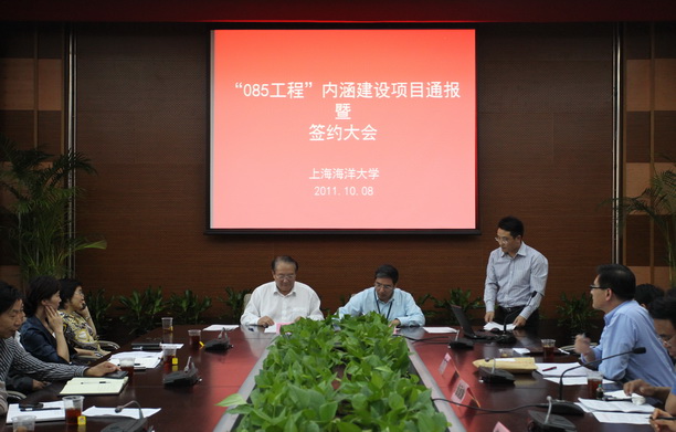 10月8日下午,学校在图文信息中心102会议室召开了“085工程”内涵建设项目通报暨项目签约大会。校党委书记虞丽娟、校长潘迎捷、副校长黄硕琳、封金章、程裕东,以及各学院院长、085工程规划二级、三级项目负责人、机关有关职能部门负责人和085工程办公室成员出席了会议。会议由黄硕琳副校长主持。