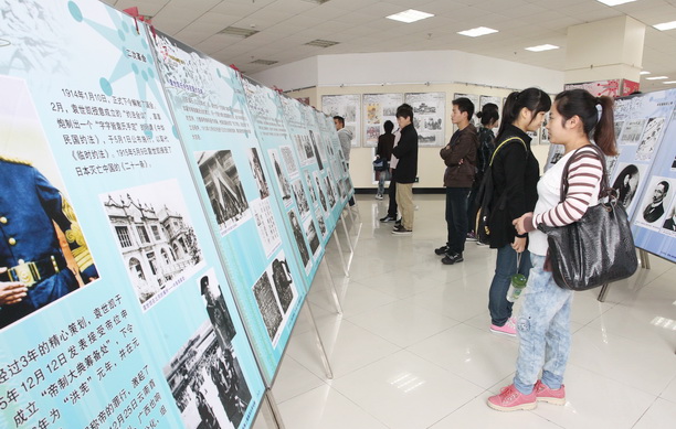 为纪念辛亥革命100周年,激发广大师生的爱国热情,丰富思政工作中爱国主义教育的内涵,2011年10月10日上午,正值武昌首义100周年之际,校党委组织部(统战部)、宣传部、学生处、团委组织部分青年教师和学生干部前往图文信息中心三楼,参观 “纪念辛亥革命100周年大型图片展”。