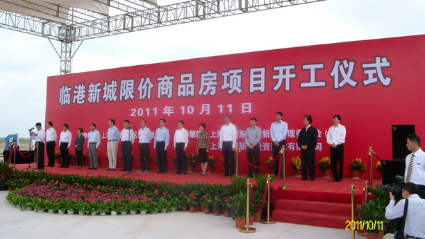 2011年10月11日上午,本市首个限价商品房项目——临港新城限价商品房开工。市委副书记、市长韩正,市委常委、浦东新区区委书记徐麟,市政协副主席、浦东新区区长姜樑等出席开工仪式,韩正市长宣布项目开工。我校党委书记虞丽娟在校办公室主任张敏、后勤管理处处长俞渊陪同下也应邀出席。期间,韩正市长会见了虞丽娟书记等入驻临港新城的单位负责人并进行了愉快的交谈,虞书记代表学校向给予我校办学支持的市、区和临港管委会等相关单位表示感谢,并希望限价商品房保质保量、早日竣工交付使用,为学校人才队伍的稳定和事业发展提供保障。