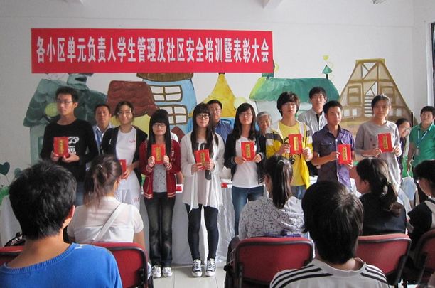 10月11日下午,在第八小区活动室由社区管理中心及社区党员示范团联合举行小区负责学生聘任、表彰及培训会议,继续开展大学生在社区中的自我管理、自我服务和自我教育。社区全体管理员、各小区长、单元长及社区主要负责同志120余人参加会议。