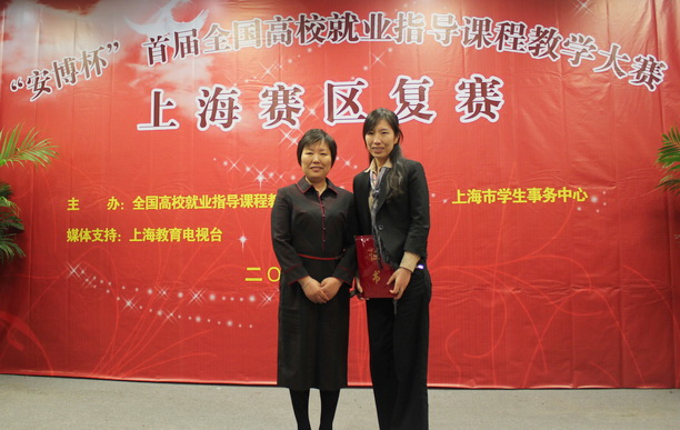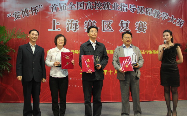 2011年10月14日下午,“安博杯”全国高校就业指导课程教学大赛上海赛区(复赛)在上海应用技术学院图书馆报告厅拉开战幕,共有来自11所高校的15位教师参加了本次复赛的角逐。我校人文学院成茜老师经过教师讲授展示以及现场专家提问两个环节的比赛,最终荣获优秀奖,同时我校荣获此次大赛上海赛区优秀组织奖,封金章副校长代表我校上台领奖。