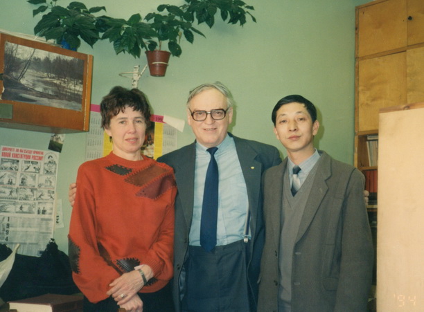 留学俄罗斯莫斯科鲍曼科技大学时与导师(中)合影,拍摄于1994年3月