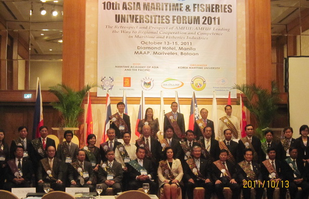 我校黄硕琳副校长、海洋科学学院许柳雄院长12-16日赴菲律宾马尼拉参加由韩国海事大学主办,菲律宾亚洲和太平洋海事学院(MAAP)承办的第十届亚洲海事与渔业大学论坛(AMFUF2011)。来自韩国海事大学、俄罗斯远东国立渔业大学、日本东京海洋大学、越南海事大学、泰国东方大学、缅甸海事大学、台湾海洋大学等10个国家的12所亚洲海事与渔业大学约40位代表出席了会议。