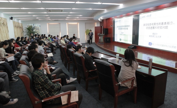 随后,李建中教授为学院的教师和研究生做了题为《海量信息可用性基础理论与关键技术研究》的学术报告,从研究意义、关键科学问题、研究内容以及预期研究成果与创新等四个方面阐述了他主持的973项目的主体思路。李教授认为该项目将围绕多种类型和以多种方式存储的海量信息,以信息一致性、精确性、完整性、时效性和实体同一性为核心,以保障信息可用性以及源于信息的知识的可用性为目标,拟解决“量质融合管理”、“劣质容忍原理”、“深度演化机理”三个关键科学问题,创建一套完整的海量信息可用性理论、方法学和技术体系并应用于“数字海洋”中,高质量完成国家重大课题。