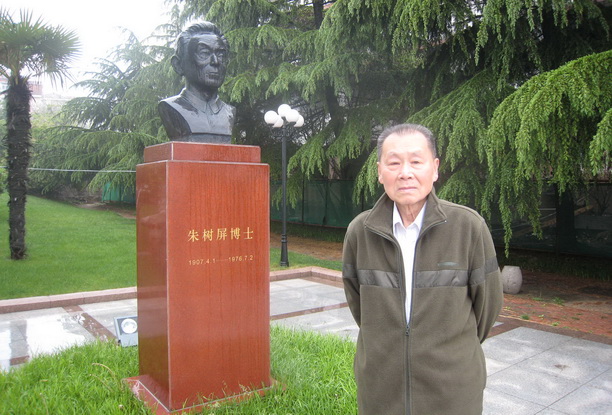 在青岛黄海所与已故导师铜像合影