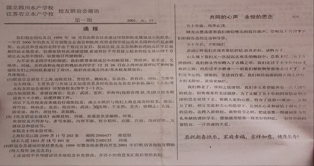 退休后,我们对母校还是很怀念的。我们有很长一段时间和学校没有接上线,我们就自己组织了同学会。90周年,还有其他到四川合川去搞活动、到南京活动都是我们46、47、48年这几批同学能联系上的举办活动,我们对母校还是很怀念的。后来是我们给校友会的老师发了一封信后,就和学校联络上了。之后95周年,都有请我们的。没有联系上的时候我们同学也很团结,东南西北的同学都来,北京、大连、广州,离开学校那么久了,而且时代又发生了那么大的变化,感情都很深的,回来碰到一次,大家都很高兴的。都回忆到年轻时候同窗的日子。我们还自己搞了一个校友联谊会通讯。