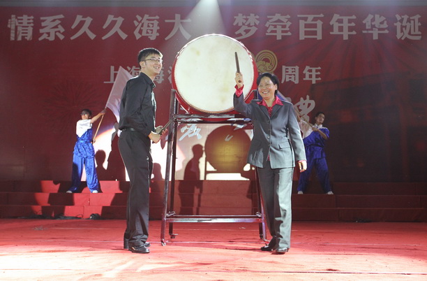 虞丽娟书记敲响了百年校庆366天倒计时鼓点