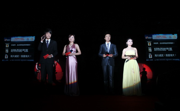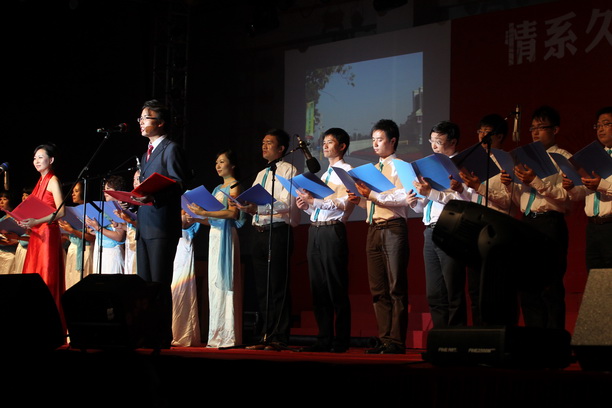 在第二篇章“青春海大”,青春歌曲联唱《我们的故事》唱出了学校各个学院的特色、学子的风貌和对母校99周年校庆的欢唱和祝福;舞蹈《紫荆流云》震撼了全场的眼球,优美的舞姿展现了的我校学子的毅力和坚持。来自于东方老年艺术团的合唱《清晨,我们走上小道》、《我们举杯》让我校师生从老艺术家们悠扬的歌声中,静静地品味百年海大的无穷韵味。由新疆班和民乐团共同演出的民乐、舞蹈《节日赛马》为观众带来了异域风情美享受。随后,我校校友陈洁夫的长子陈伟鹤先生、上海华侨事业基金会崇明侨联副主席杨定邦先生、上海校友会代表陶军、李有德、江苏校友会的秘书长晁祥飞分别登台,与在场师生分享了他们对母校的记忆与感念。校友们一句句深情诉说表达了全国各地校友对母校百年校庆的祝福和骄傲。