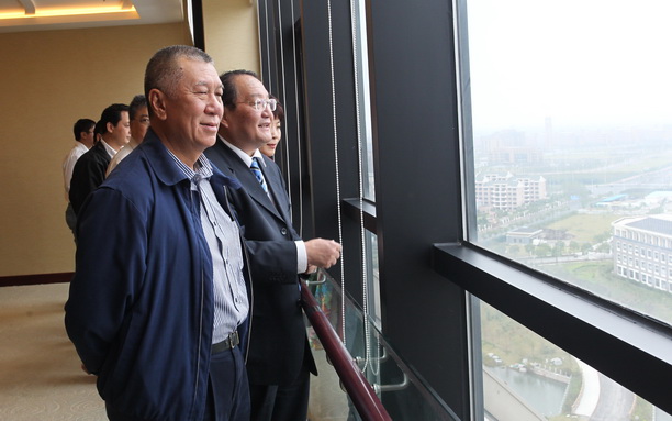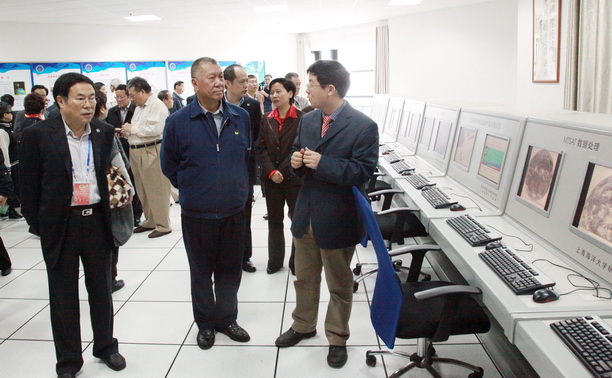 虞丽娟书记、潘迎捷校长在图文信息中心12楼为来宾们介绍了我校及临港大学城的布局。随后,考察团参观了我校遥感实验室。上海市教委薛明扬主任在图文信息102会议室向考察团介绍了上海市大学园区的建设和发展概况。